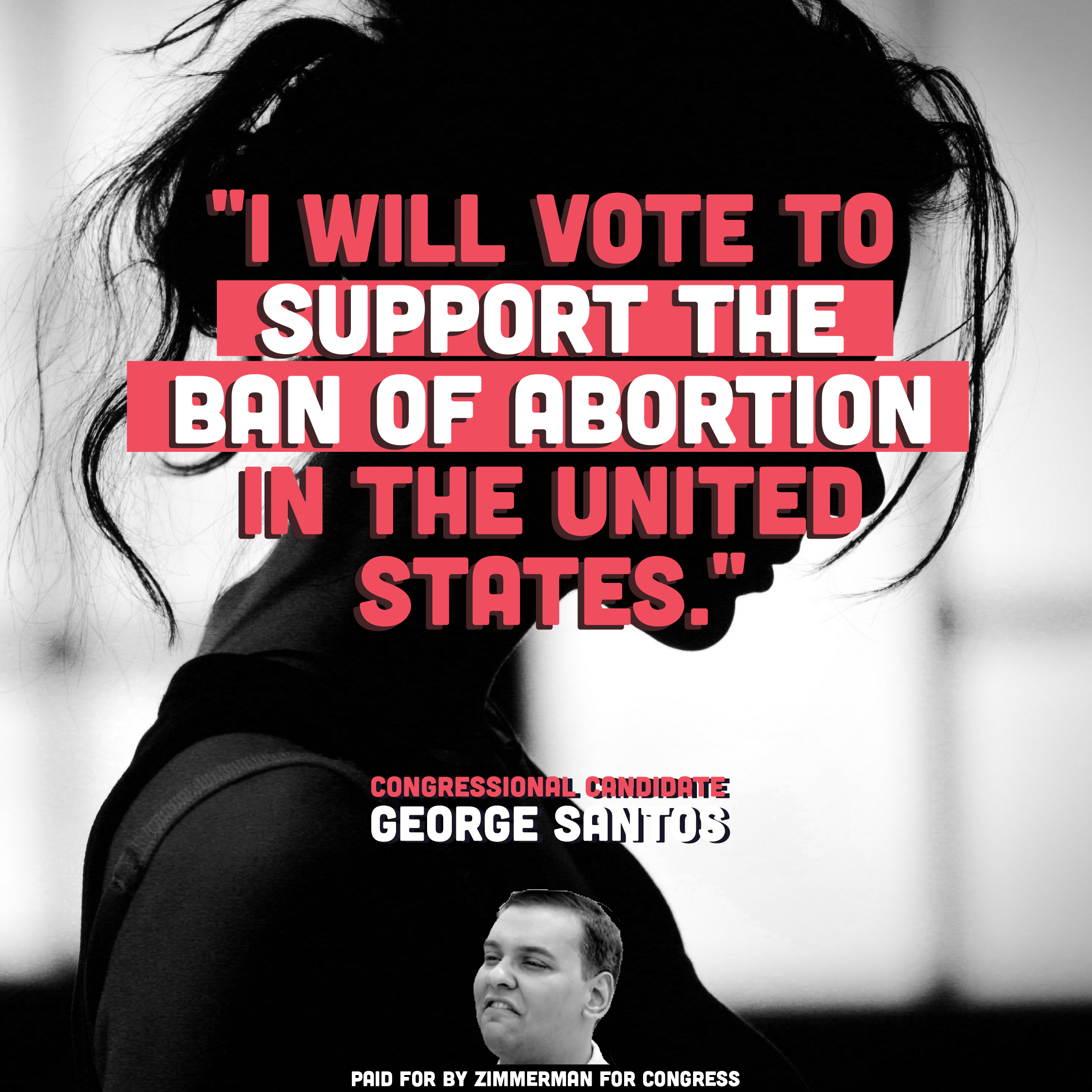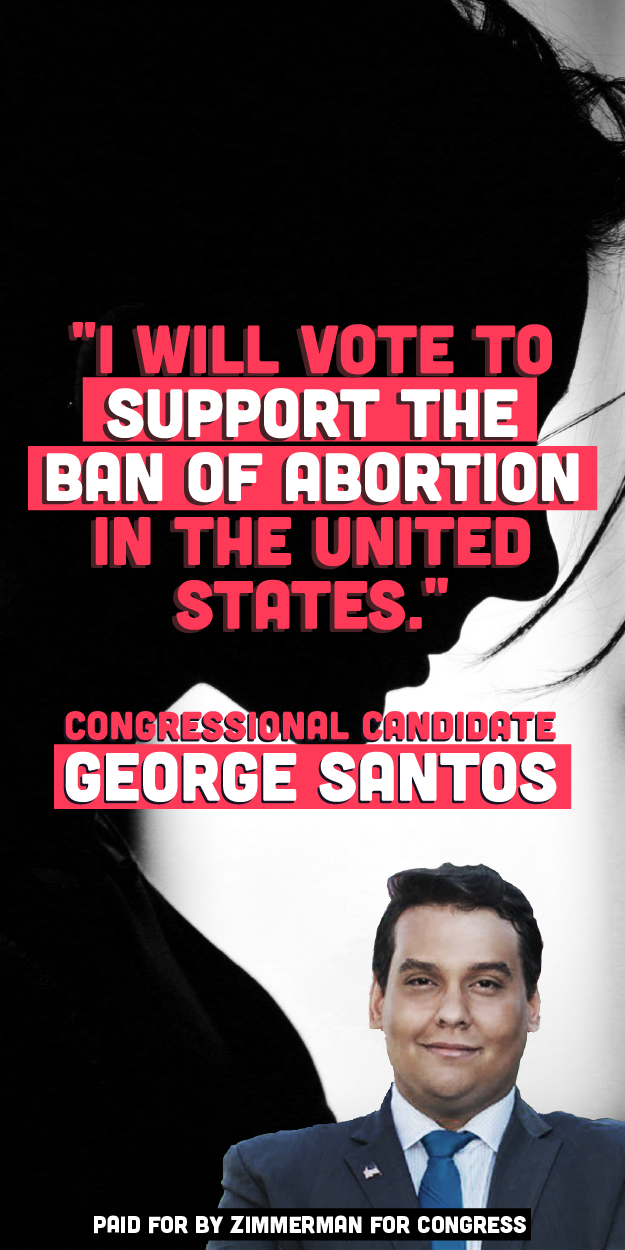 These ads focused on congressional candidate George Santos’ avowed anti-abortion stance. The visual concept emphasizes Santos prioritizing his own voice over the voices of those who need abortion access.