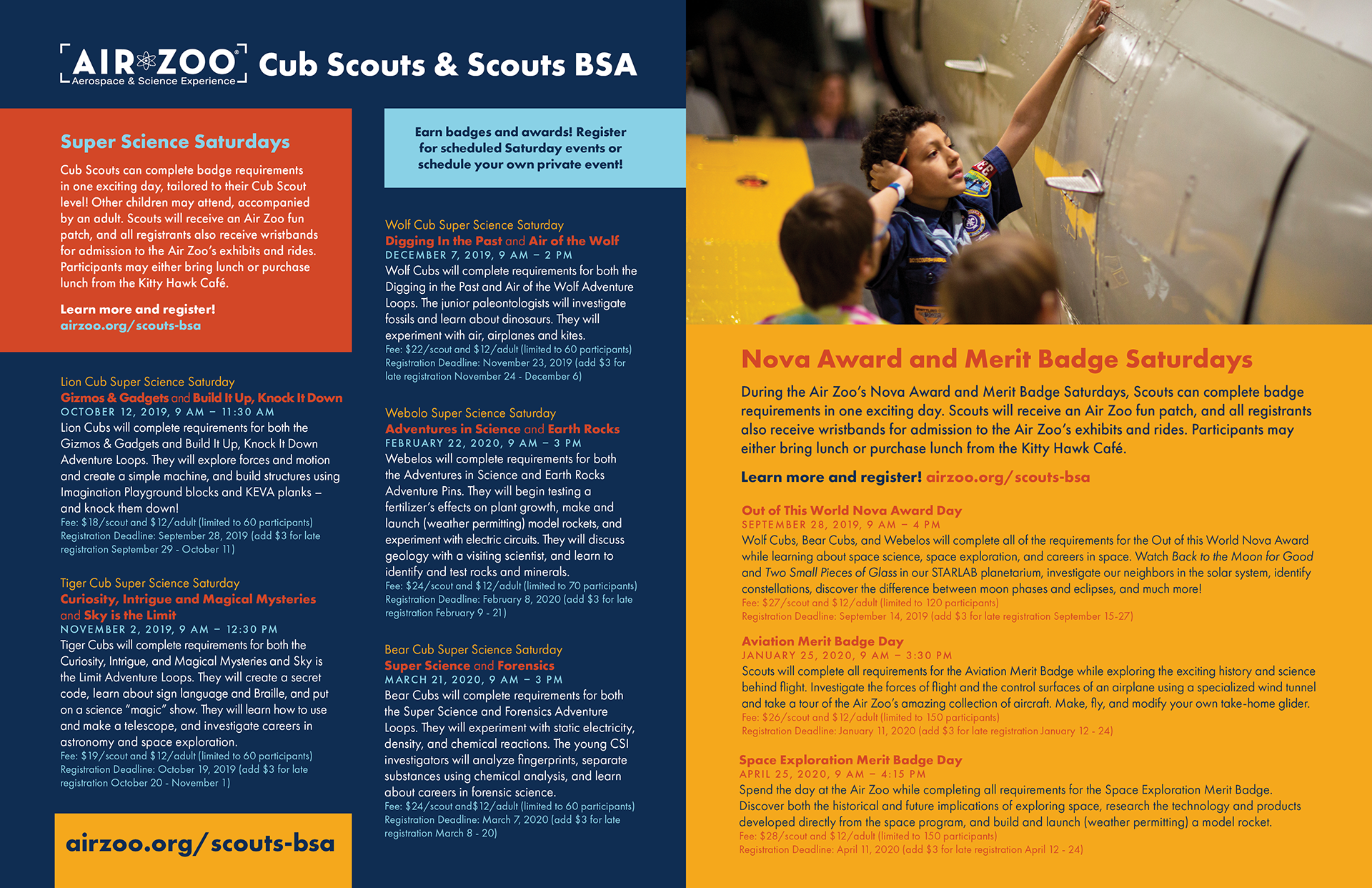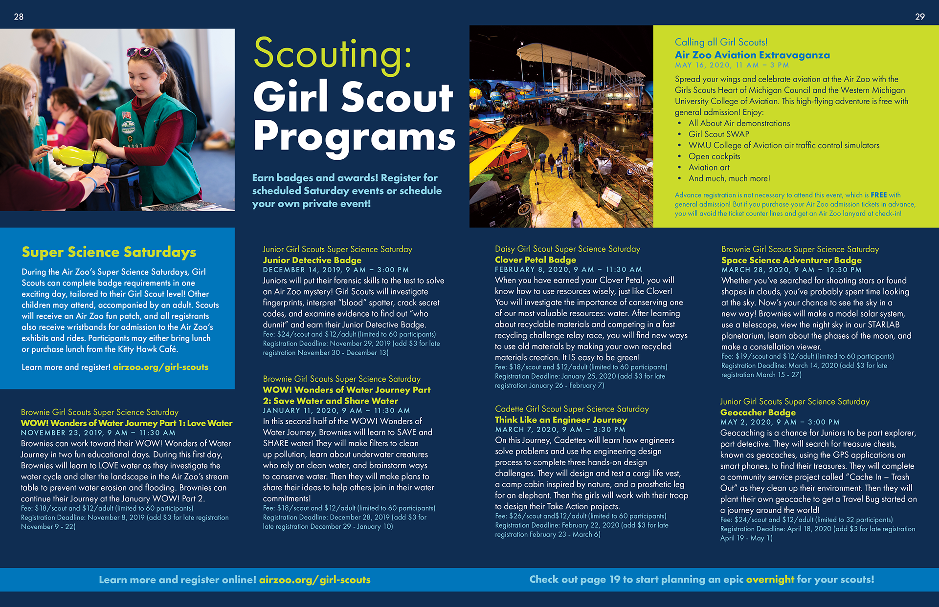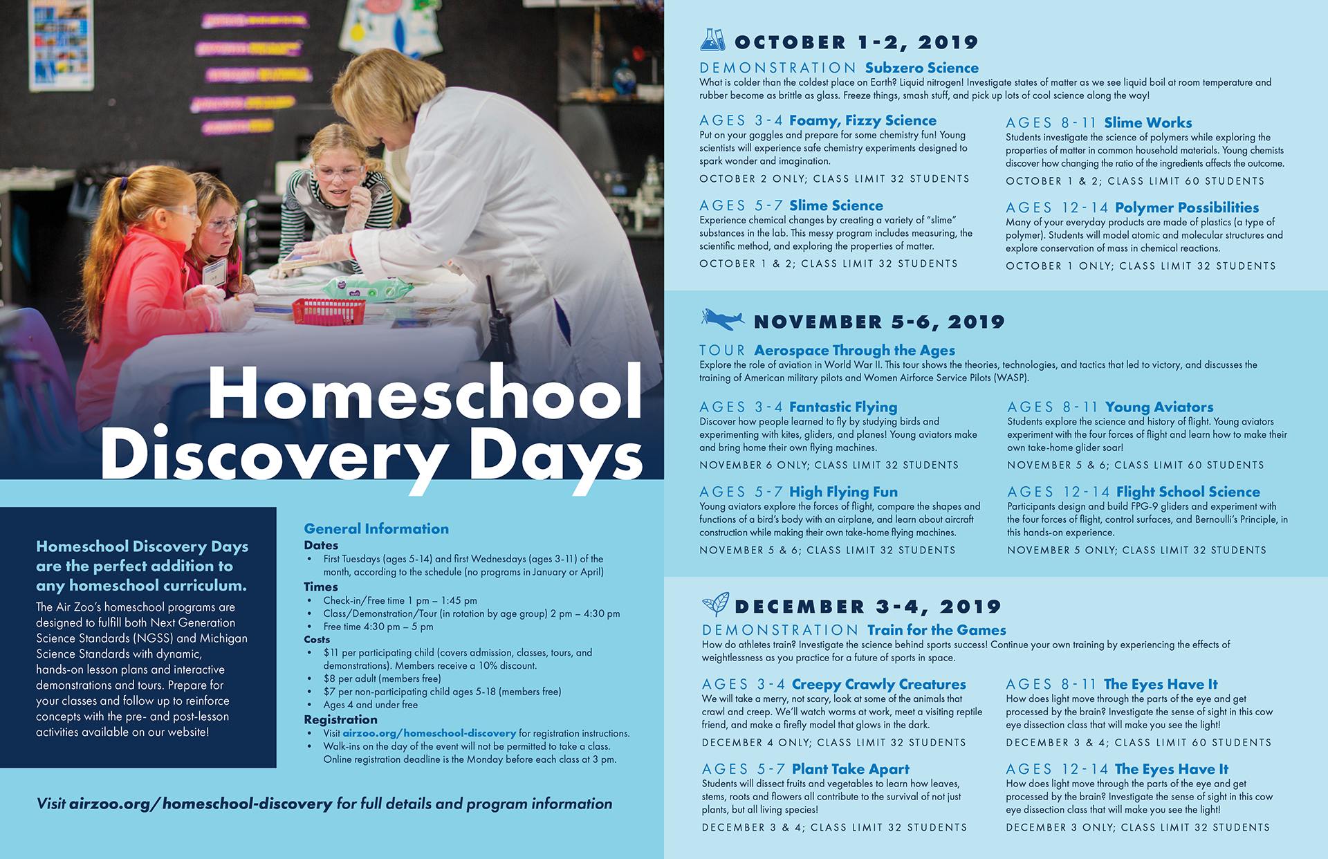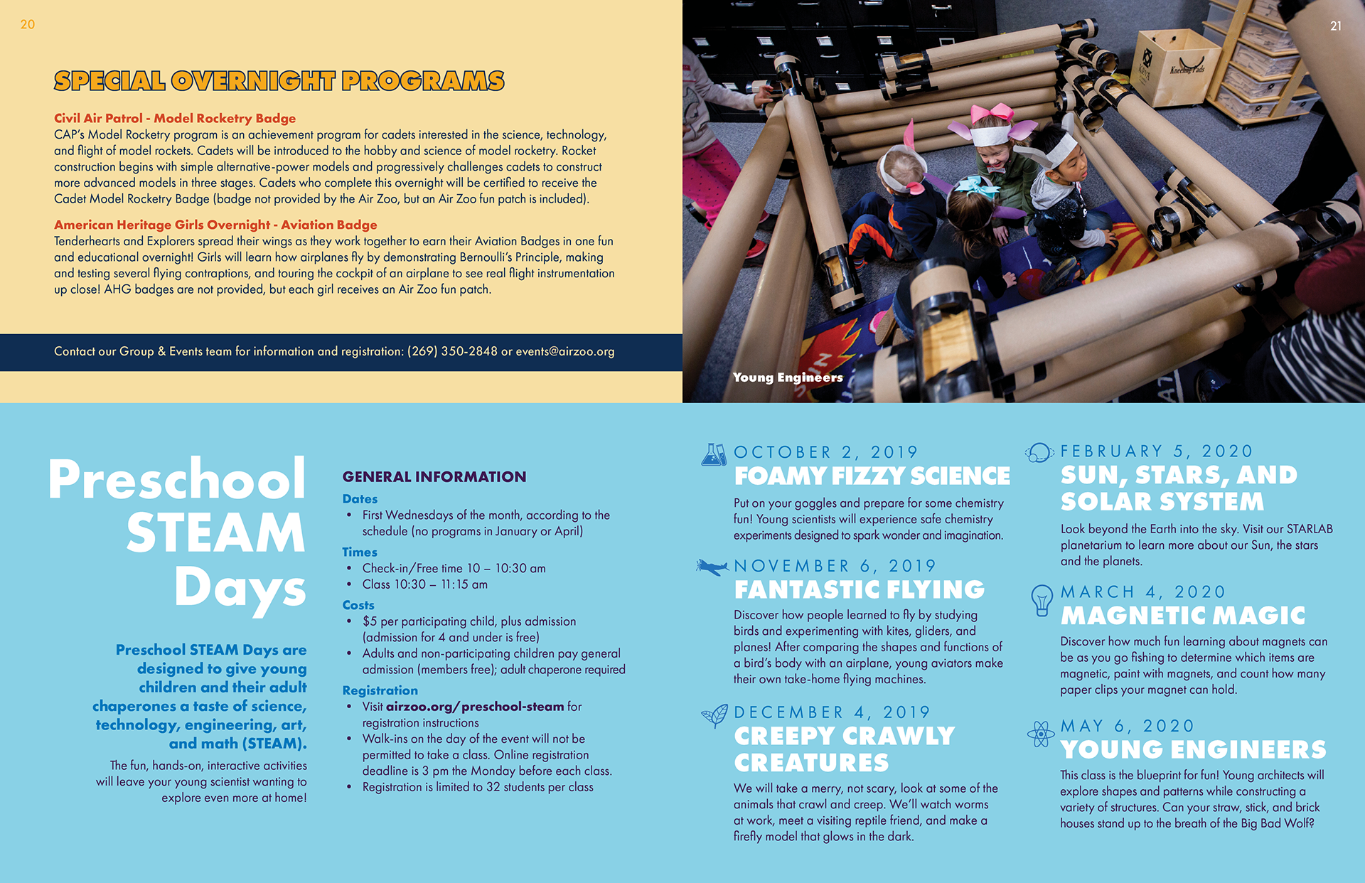 This product is one that the Air Zoo’s education department distributes to teachers and homeschooling parents across Michigan, Indiana and Illinois, and highlights all of the programs we have to offer. Previous versions had been less effective due to information overload, overuse of tiny pictures, and [shudders] clip art. My mission was to make this as clean, organized, and simple as possible, and align it with the Air Zoo’s current brand. I’m really proud of the result and grateful for the team that collaborated and helped me turn out the most user-friendly and on-brand version of this product.