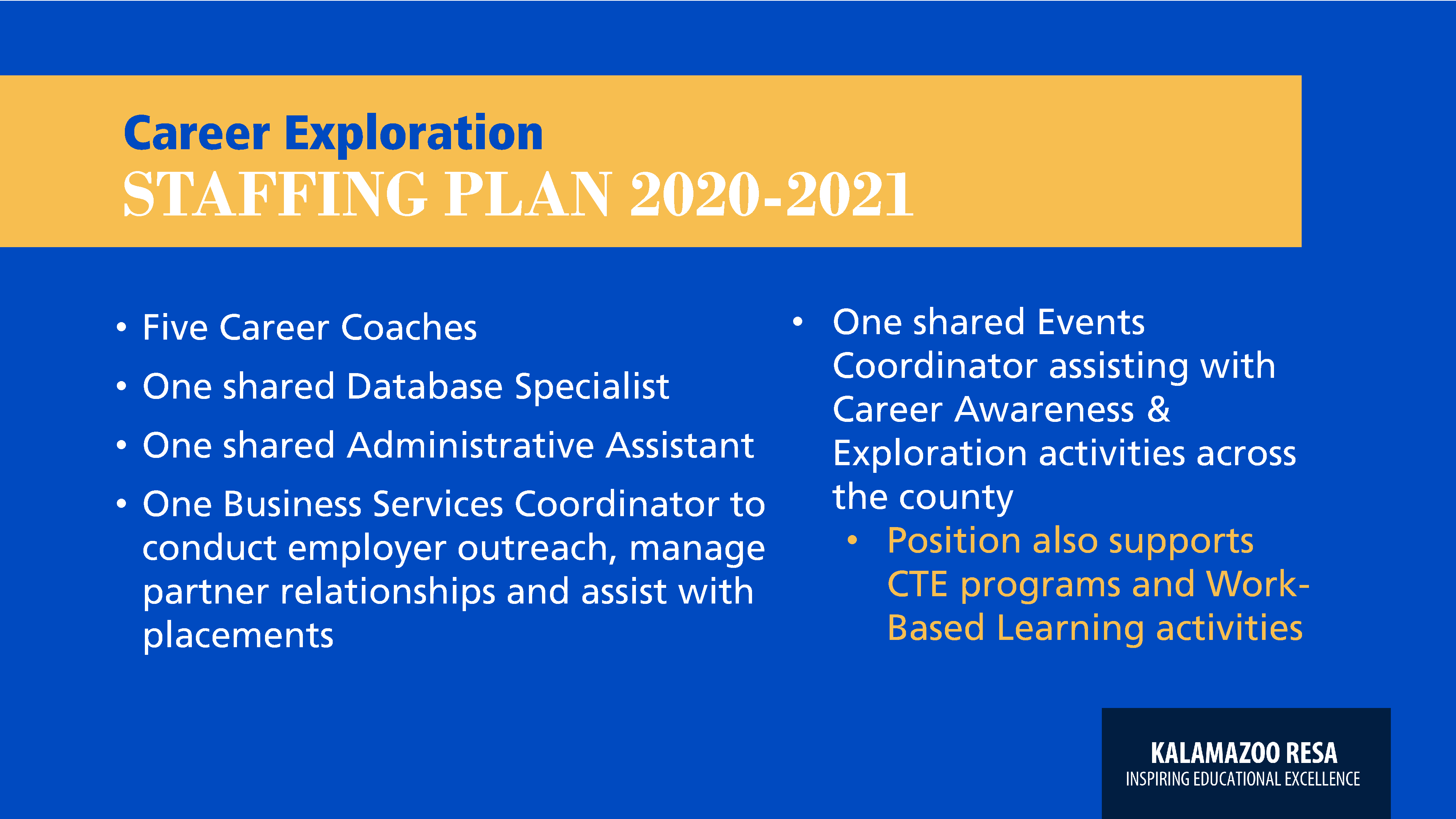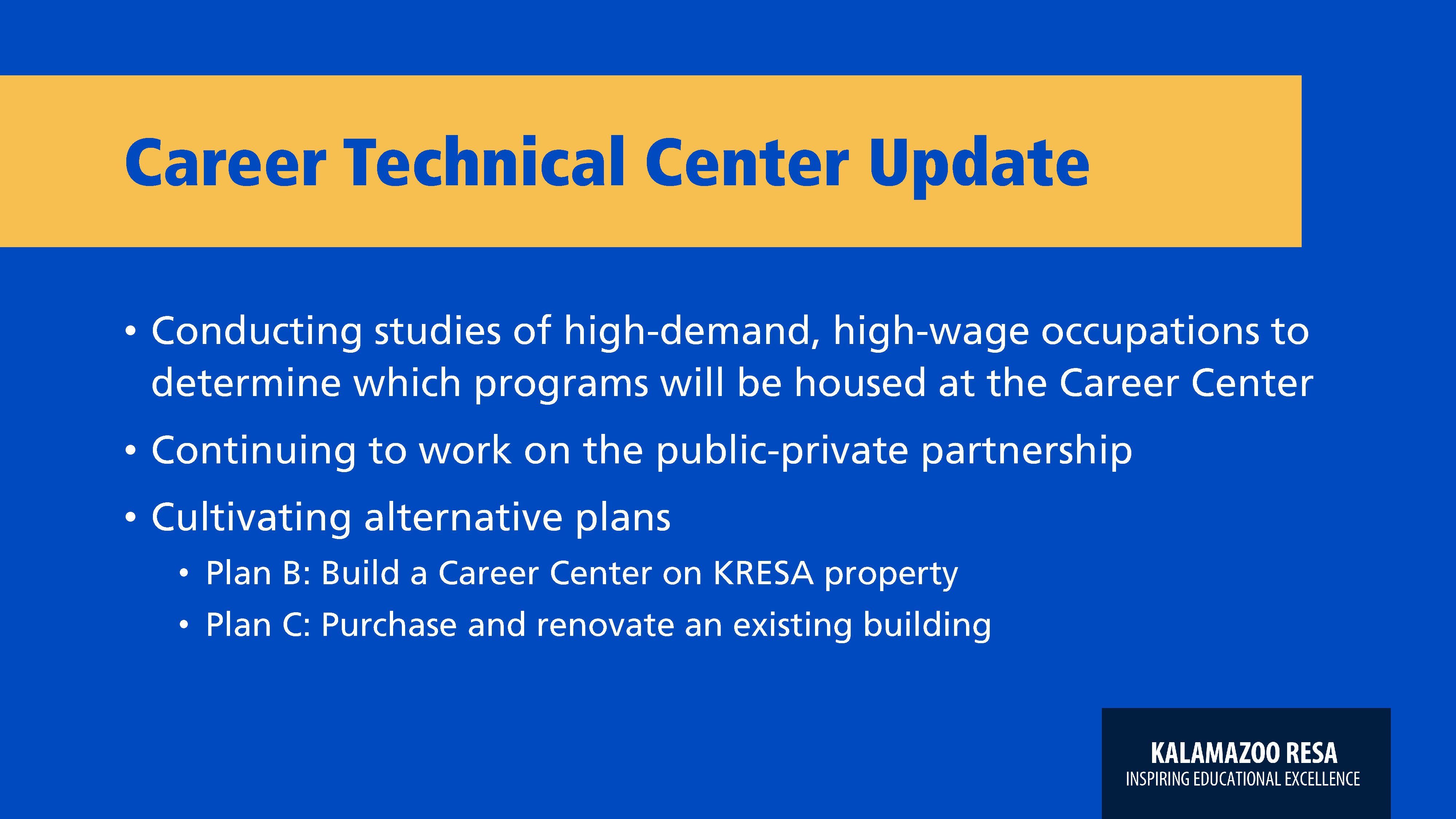 This presentation was created to update stakeholders on the current status of the new program (CTE) which combined three separate programs into one.