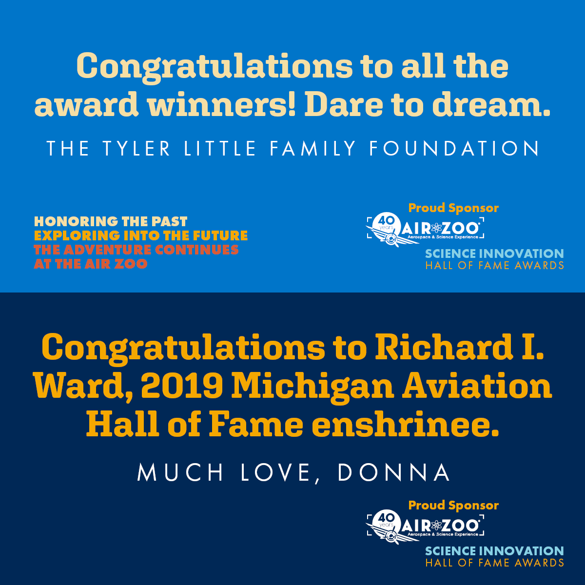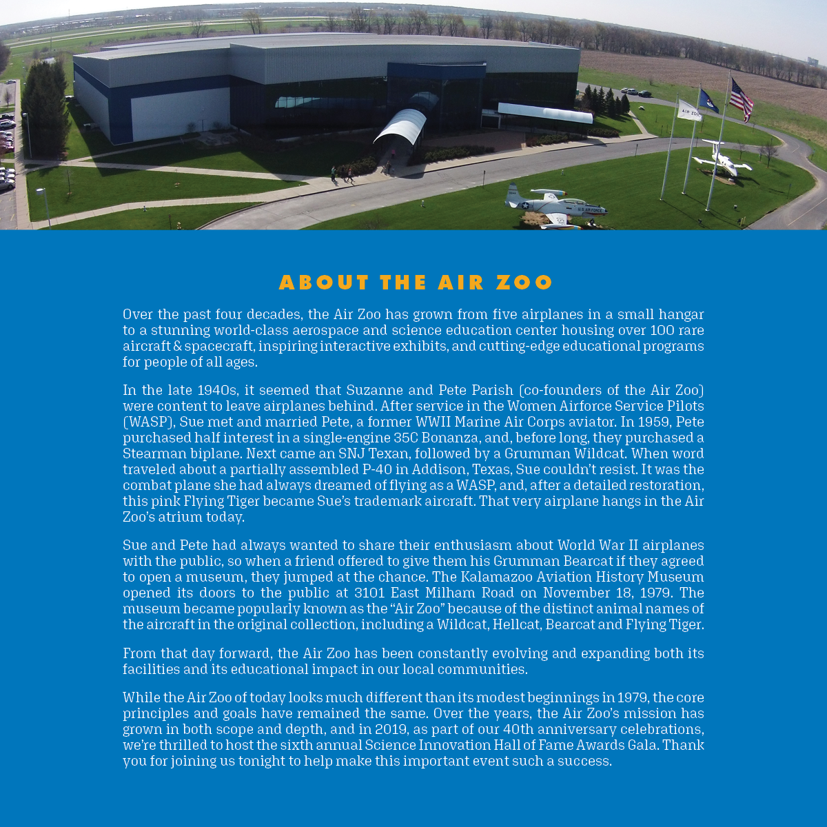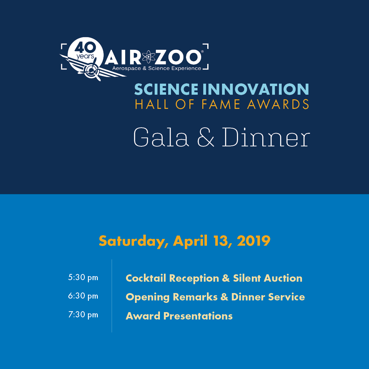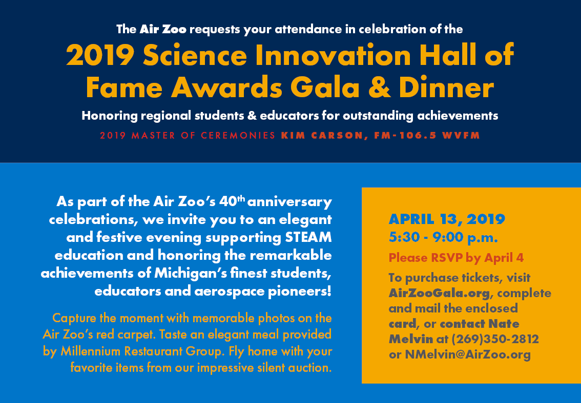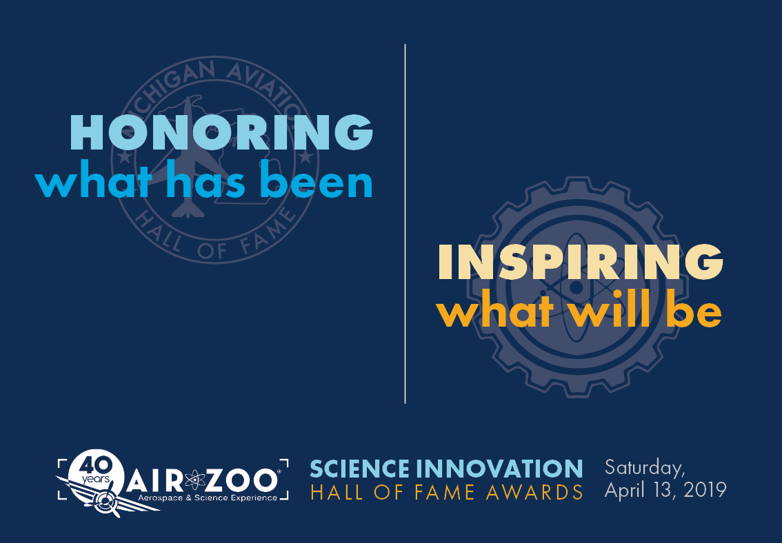 I managed all things visual and creative at the Air Zoo starting in November 2018. Creating the look for SIHOF was a huge project, and I’m incredibly pleased with how everything turned out. The Science Innovation Hall of Fame Awards (SIHOF) take place every year and honor students and educators committed to innovating within local STEAM education programs, in conjunction with the Michigan Aviation Hall of Fame Awards (MAHOF).